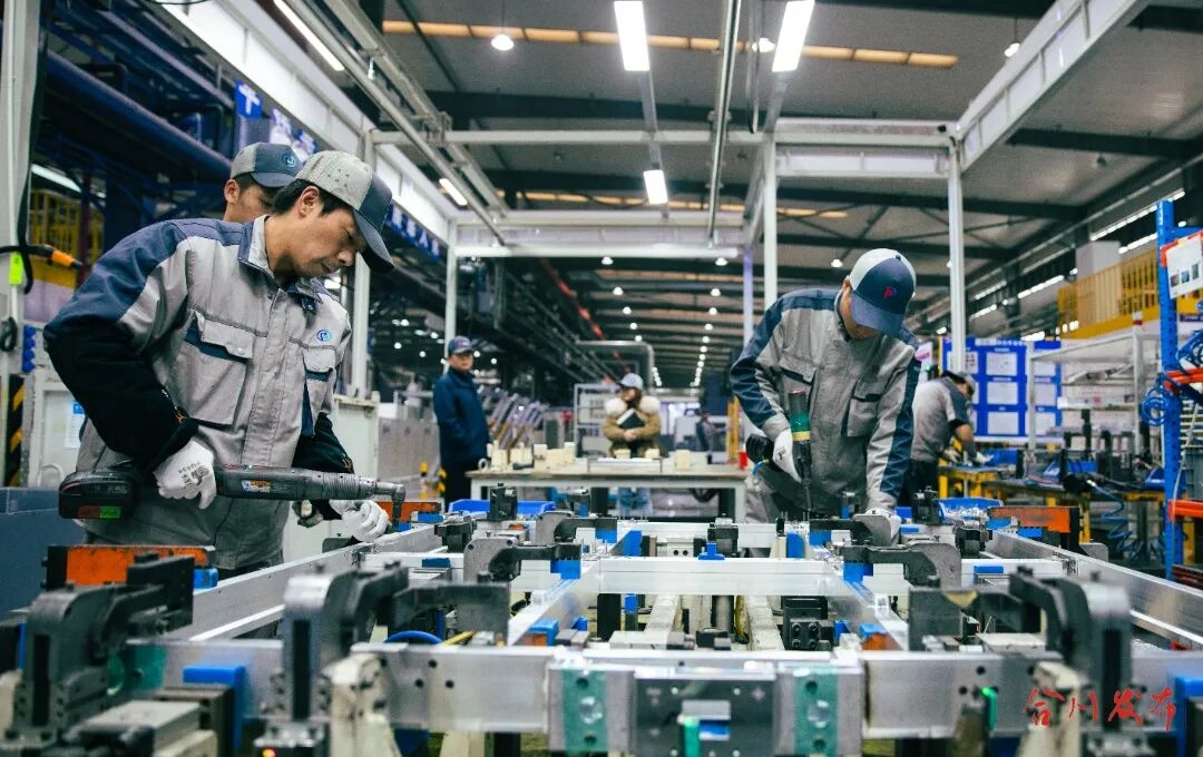 ▲重庆平伟汽车系统有限公司生产车间里,工人们忙得热火朝天