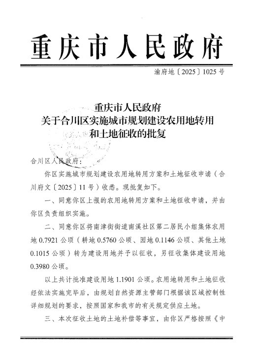 附件:1.用地转用和土地征收的批复(渝府地〔2025〕