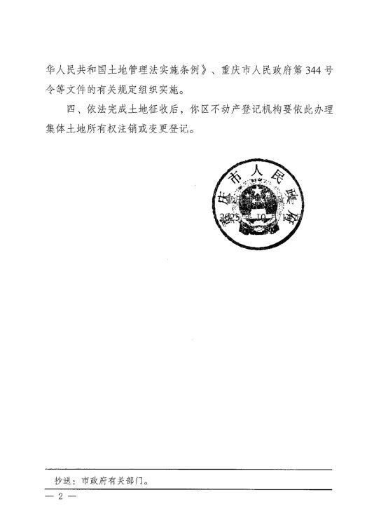 重庆市人民政府于2025年10月14日以渝府地〔2025〕1025号文件批准。批准文件见附件。