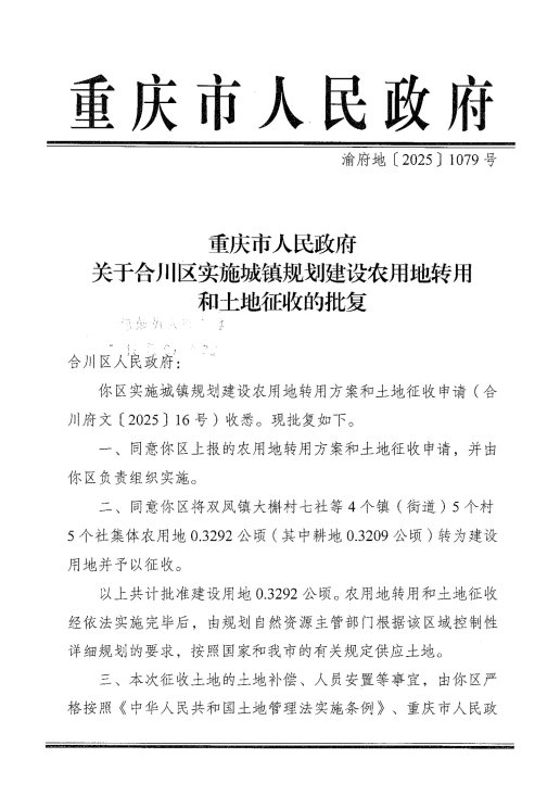 附件:1.用地转用和土地征收的批复(渝府地〔2025〕