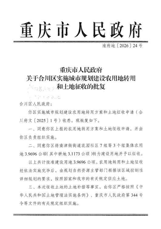 附件:1.用地转用和土地征收的批复(渝府地〔2026〕24号)