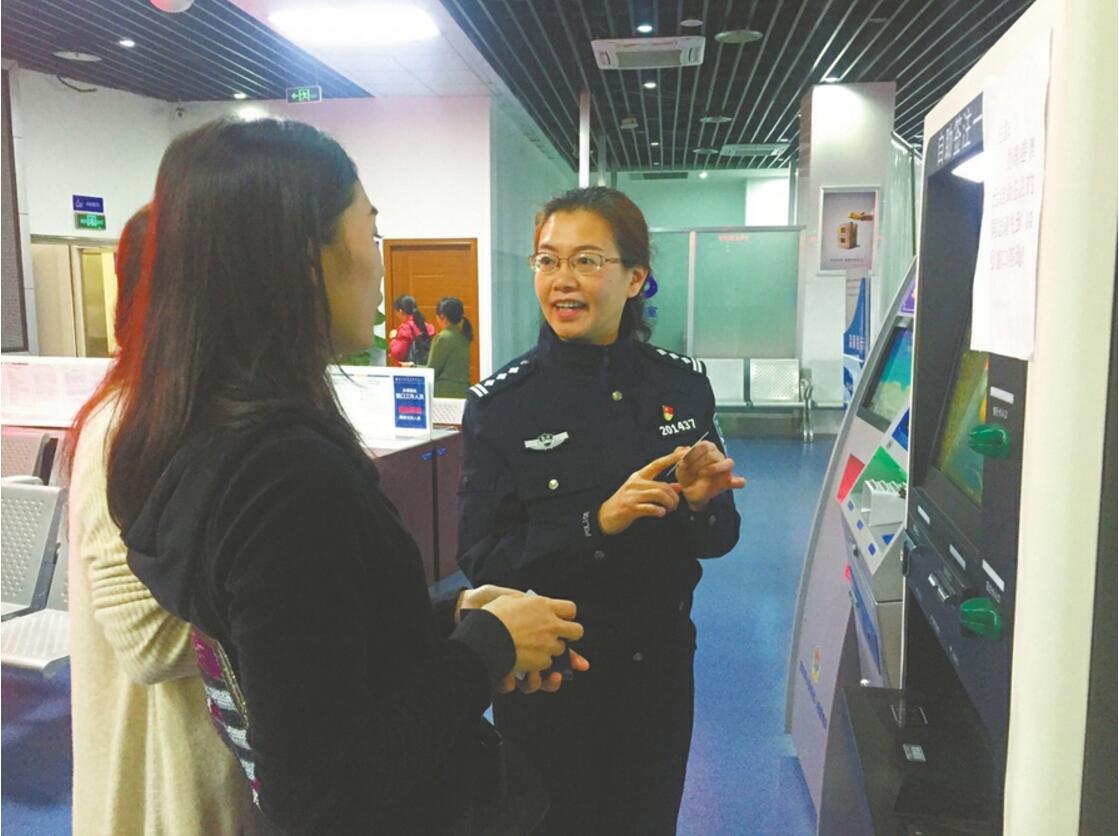 “同志,这个自助缴费我不会用,我把钱给你,你帮我交一下吧!”“好的,老人家,你稍等。”见到朱成敏时,她正热心地帮一名前来办理护照的老人收费、找钱。“我们每天都会遇到不少这种情况,大多数老年人不懂手机支付,我们就主动去帮助,让他们办事方便、满意,这是我们的服务项目之一。”朱成敏笑着说。