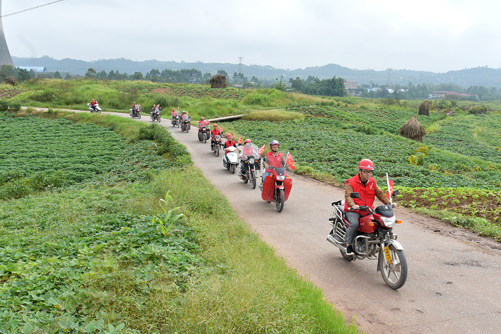 合川区双槐镇骑行便民服务队志愿者穿梭乡间,上门为村民服务