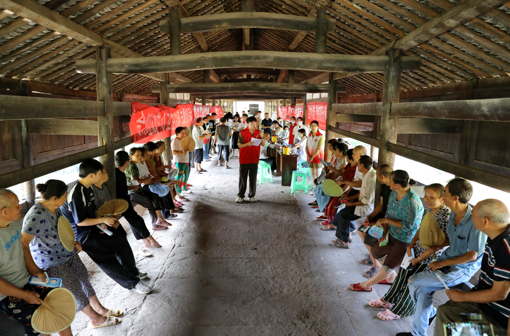 志愿者在合川区双槐镇五星桥上开展宣讲活动