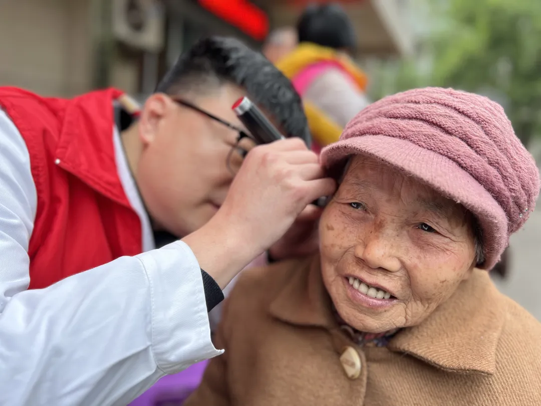 志愿者为老人进行健康义诊