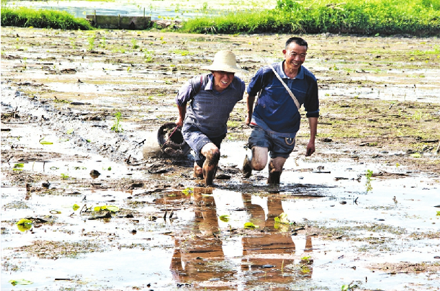 当记者问及为何用人拉坛子开沟而不用机械或人工用锄头开沟时,赖成红说,机械开沟小田去不了,人工用锄头开沟费时费力,用人拉着装有泥土的坛子开沟,不仅省时省力,而且沟的宽度也比较均匀,同时每亩还可节省大约200块钱开沟费用。