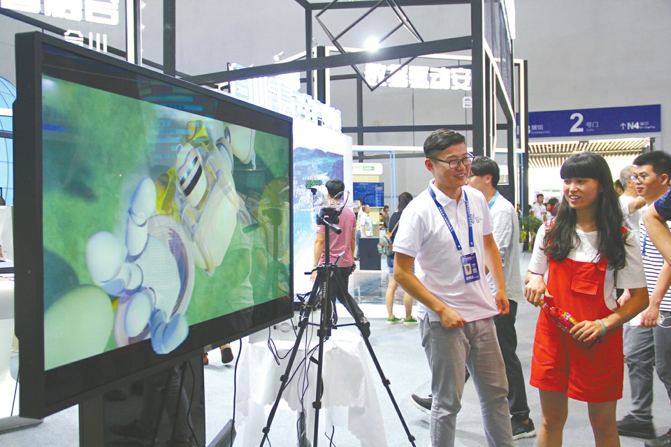 合川日报讯(记者 王利)“爸爸,这个飞机感觉快要飞出来了!”“咦?不戴眼镜也能看到3D画面?”8月23日,在智博会合川展馆重庆恒芯天际科技有限公司展位前,一台65吋的3D裸眼电视播放的逼真画面,吸引了不少参观市民和参展商的眼球,惊叹声不时从人群中传来。有的人不断变换角度看,想一探究竟;有的人用手去触摸屏幕,想感知里面的东西是否真的出来了;还有的人用手机将画面拍摄下来,发到群里探讨。